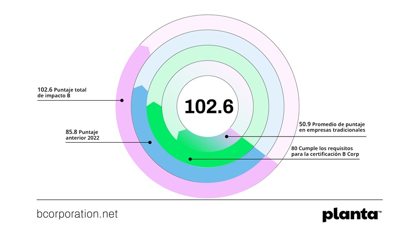 En esta nueva evaluación, Planta superó en más de 15 puntos su calificación anterior, demostrando que el impacto positivo no es solo un propósito: es una práctica sistemática, medible y escalable.