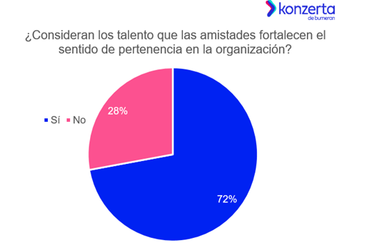 Panamá, noviembre de 2025. – Según el estudio Work Partners, amigos para toda la vida de Konzerta, portal líder de empleo en Panamá, el 72% de los talentos considera que las amistades en el trabajo fortalecen el sentimiento de pertenencia hacia la organización, frente al 28% que no lo cree así.
