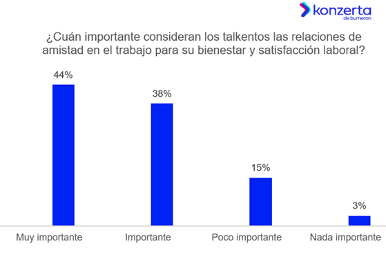 “El 72% de los talentos considera que tener amigos en el trabajo fortalece su sentido de pertenencia a la organización, mientras que el 82% asegura que mejora su bienestar y satisfacción laboral. Las relaciones que cultivamos en el trabajo tienen un impacto directo en la motivación y el compromiso. Estos datos muestran lo importante que es fomentar entornos laborales donde el compañerismo sea parte del día a día”, explicó Jeff Alejandro Morales, Gerente de Marketing de Konzerta.