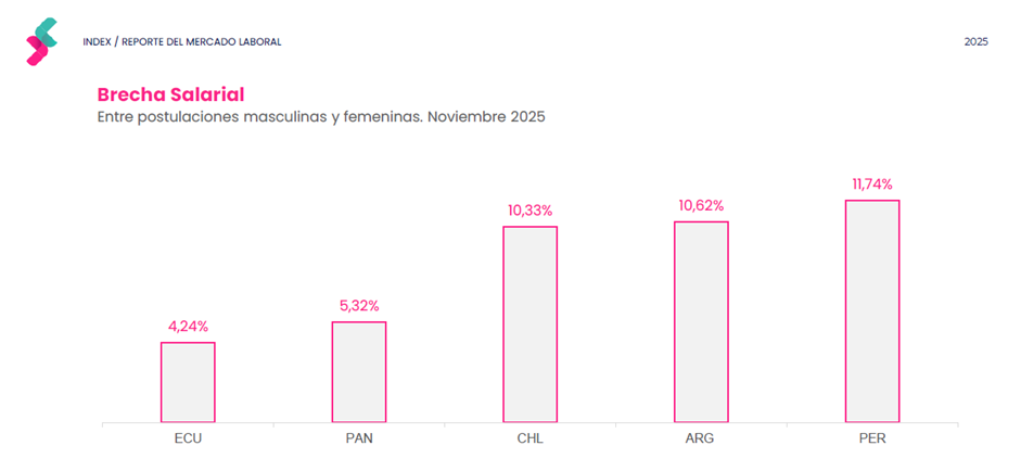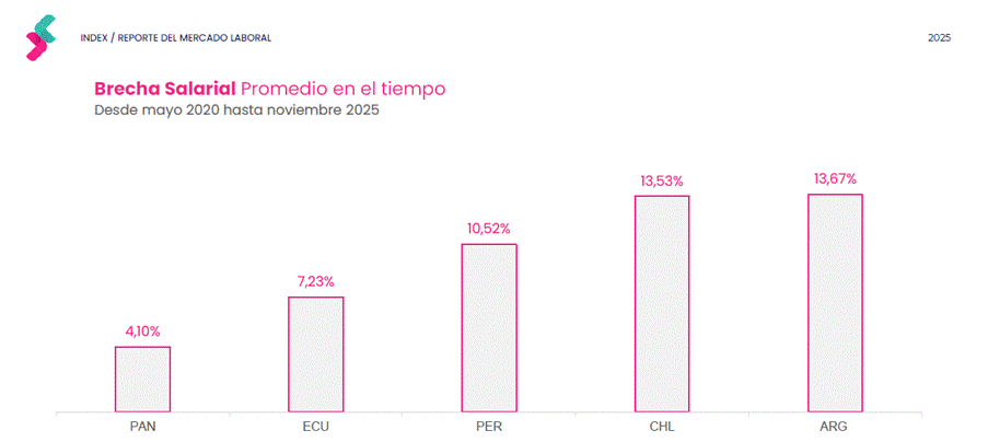 Respecto a la brecha salarial a noviembre de 2025, Panamá con 5.32% es el segundo país de la región con la menor diferencia entre los salarios requeridos según género. Los países con las tasas más altas son Perú (11,74%), Argentina (10.62%) y Chile (10.33%). La menor brecha la presenta Ecuador con 4.24%