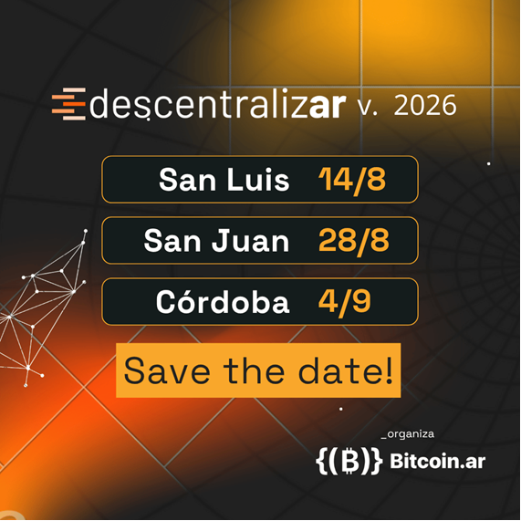 La ONG Bitcoin Argentina anuncia el regreso de Descentralizar 2026, la séptima edición de su evento federal, abierto y gratuito, orientado a la difusión de Bitcoin y la criptoeconomía desde una perspectiva educativa, social y cultural. A lo largo de siete años consecutivos, la iniciativa se consolidó como uno de los principales espacios de encuentro en el país para acercar el conocimiento sobre tecnologías descentralizadas a nuevas audiencias.